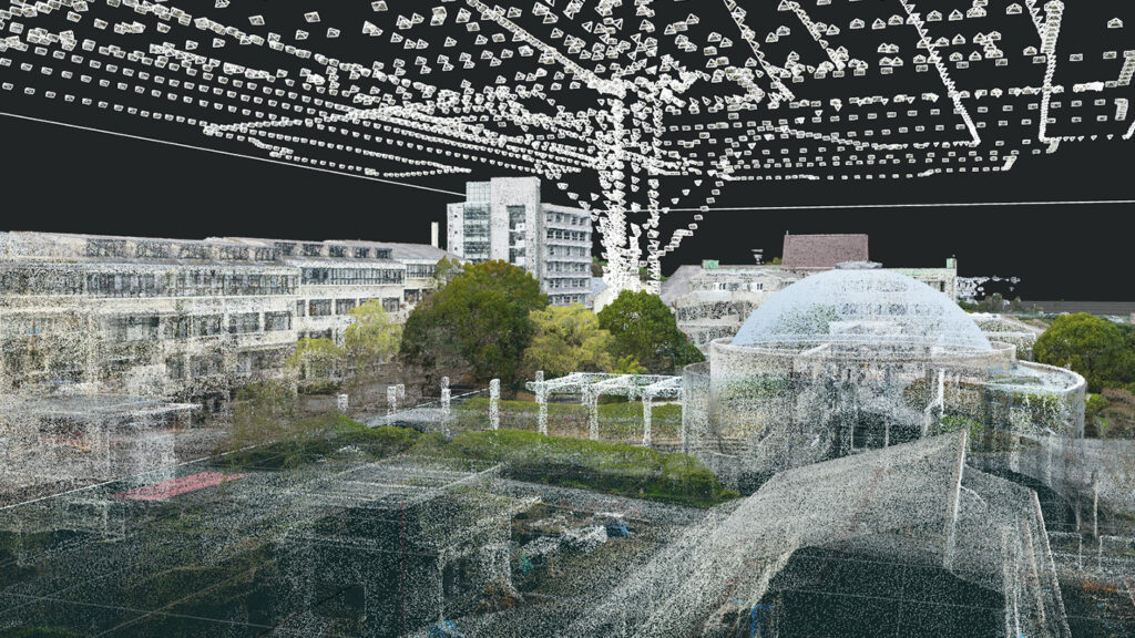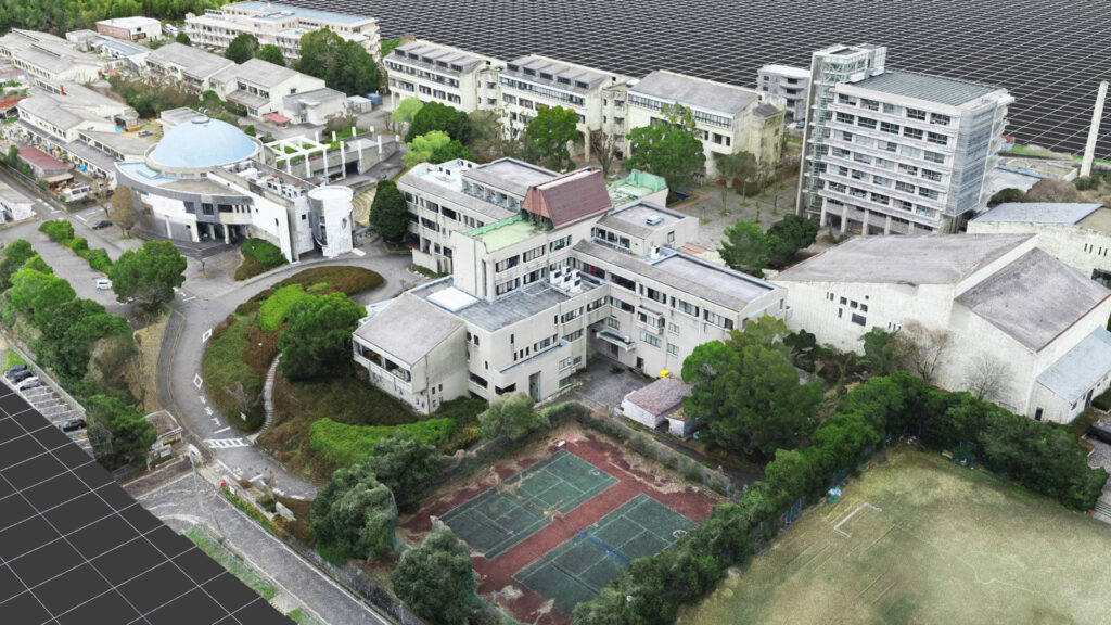 SAKIYAは本プロジェクトにおいて、ドローンとフォトグラメトリーを活用し、キャンパス全体の高精度な3Dモデル構築を担当しました。